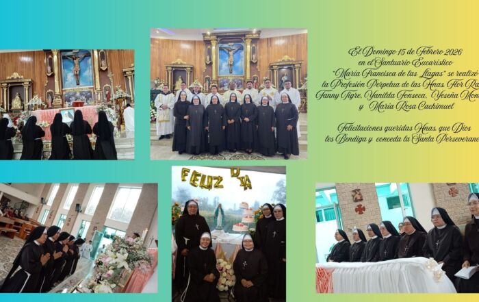 Nuestro carisma está labrado con la voz, manos y corazón de Nuestra Madre María Francisca de las Llagas en el encuentro absoluto con el Amado que se deja descubrir en cualquier parte porque, “es planta de todo suelo”, dice la Madre.